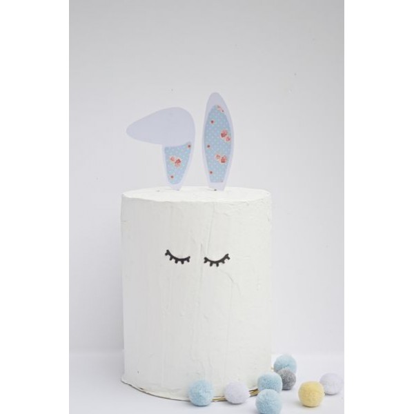 Decora tu tarta fácilmente con este precioso kit de topper de conejito en color celeste y haz especial tu fiesta de Pascua o temática.