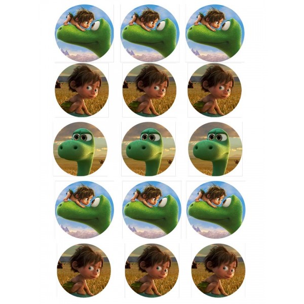 Decora tu tarta con esta simpática imagen de Arlo y Spot. Puedes modelar con pasta de azúcar la forma de la imagen y pegar el pape de azúcar encima de él. O puedes pegar directamente el dibujo sobre la tarta.
