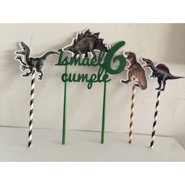 Decora tu tarta con este chulísimo kit de topper dinosaurio personalizado de dinosaurios.