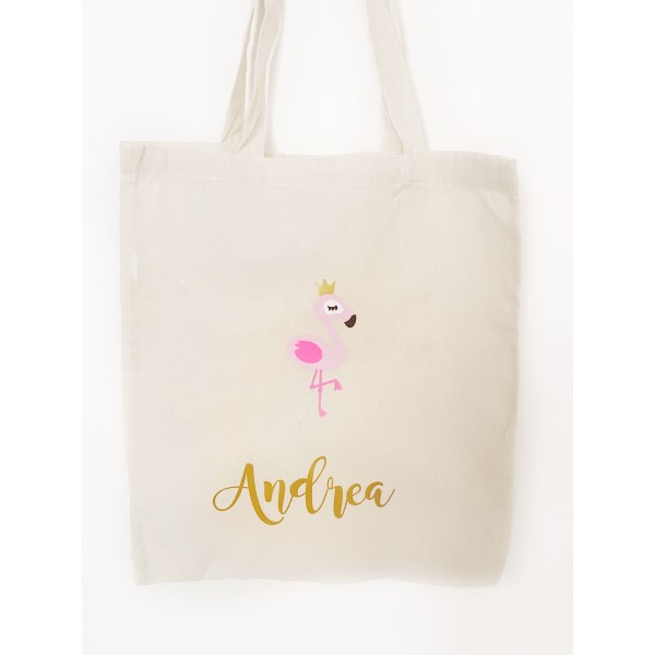 La recibirás ya lista con el nombre que elijas y el dibujo del flamenco. Puedes personalizar el nombre en la pestaña de más abajo "persoanlziación del producto - texto". Dale GUARDAR y añadir al carrito.