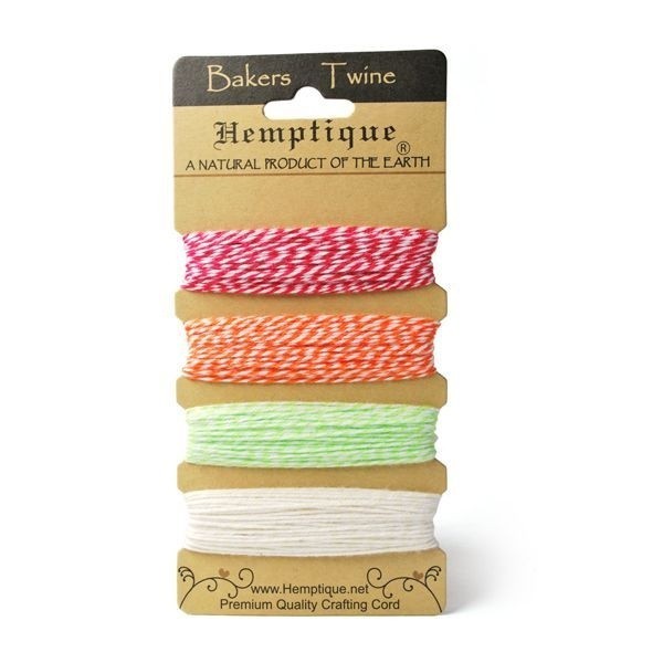 Set de bakers twine en tarjetas de 4 colores con 9,1 metros de longitud.