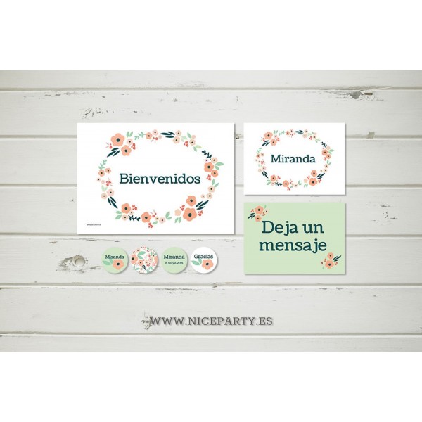 Kit de Fiesta de Comunión Flores Melocotón Montada