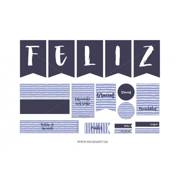 El kit de Fiesta Rayas Azules está disponible en varios formatos para que puedas elegir el que más se acomode a ti.