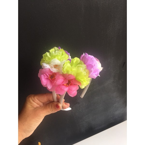 Los colores d elas flores pueden variar en función de la disponibilidad. El diseño será personalizado en cada diadema debido a la peculiaridad del producto (hecho a mano).