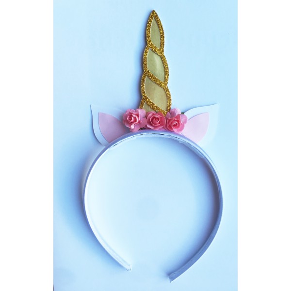 Fabricada en cartulina y flores de papel. Diadema de tela.