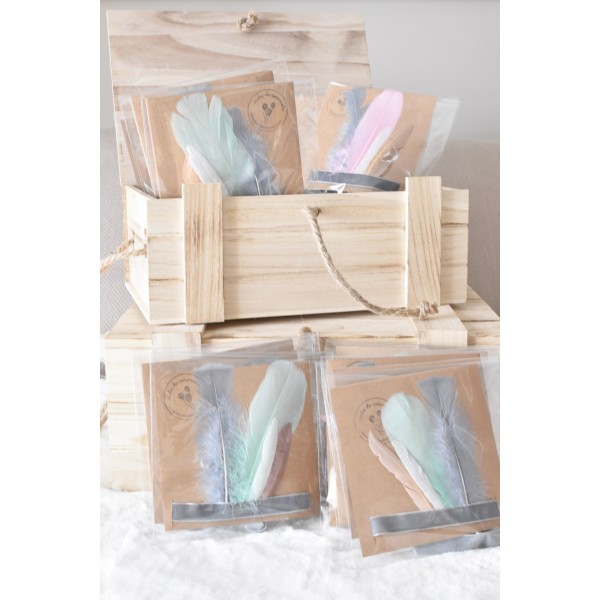 Preciosa corona artesanal de plumas con lazo de terciopelo.
