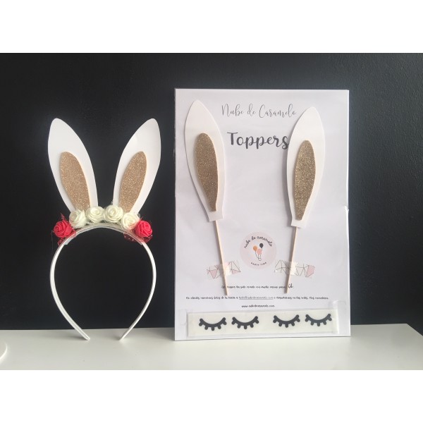 Decora tu tarta con un precioso kit de topper para decorar tu tarta.Fabricado en cartulina y goma eva las orejas. Ojos cerrados en papel de azúcar. Se envían dos pares de ojos.Incluye montaje.