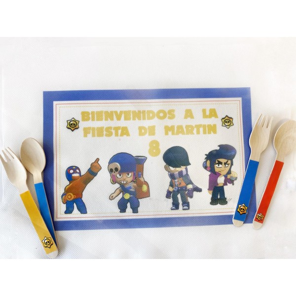 Mantel individual de tela perforada con la temática de nuestros kits de fiestas y personalizados. Elige en el desplegable si quieres también cubierto a juego (cuchara, tenedor) y cuántos.
