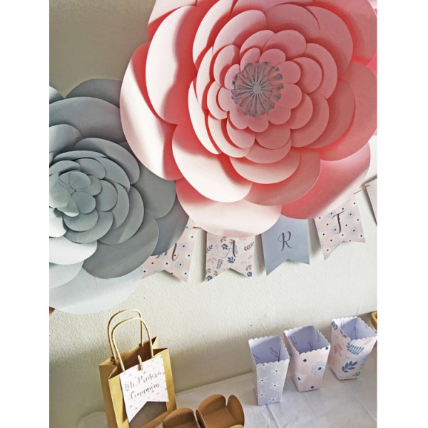 Decora la pared de fondo de tu mesa dulce con estas preciosas flores de papel hechas a mano y personalizadas especialmente para ti. Puedes pegar las flores a la pared con cinta a doble cara.