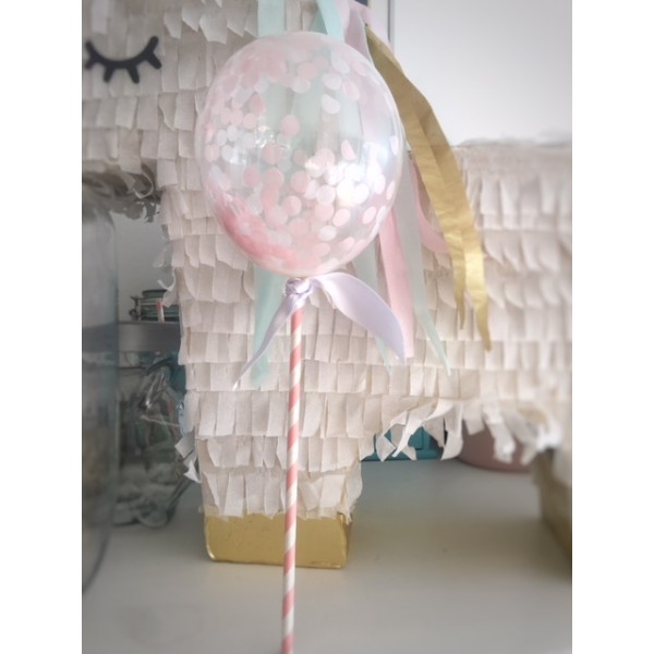 Puedes elegir el color del confetti, del lazo y de la pajita.