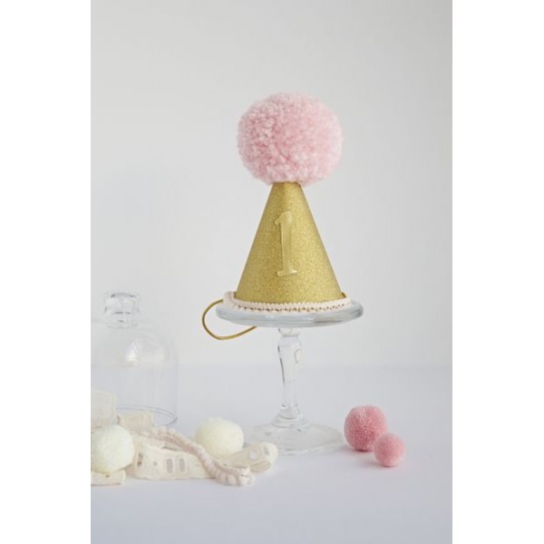 Gorrito de Fiesta para Mascota fabricado en cartulina purpurina, con pompón de lana hecho a mano totalmente artesanal y hecho pieza a pieza en nuestro taller.