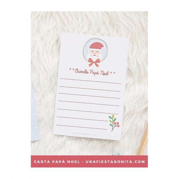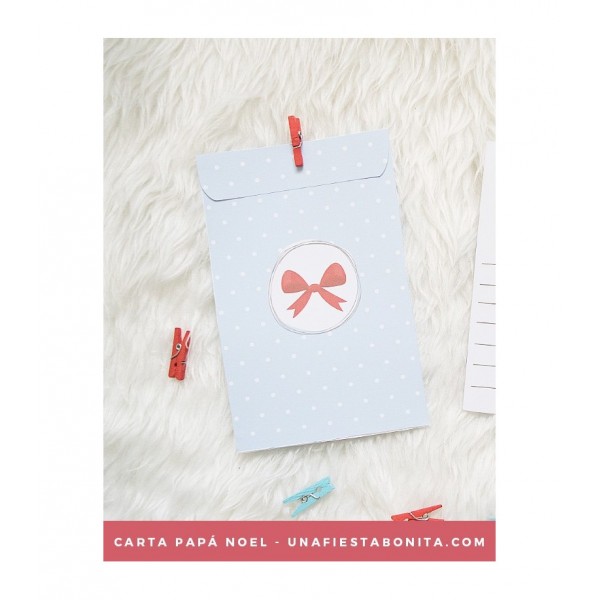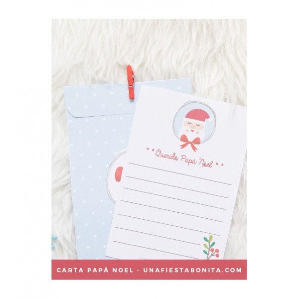 Imprimible descargable diseñado por Una Fiesta Bonita. Hojas tamaño A4 con carta y sobre para que escribas tu carta a Papá Noel. Podrás recortar, montar y pegar este kit de carta y sobre y empezar a pedir tus deseos
