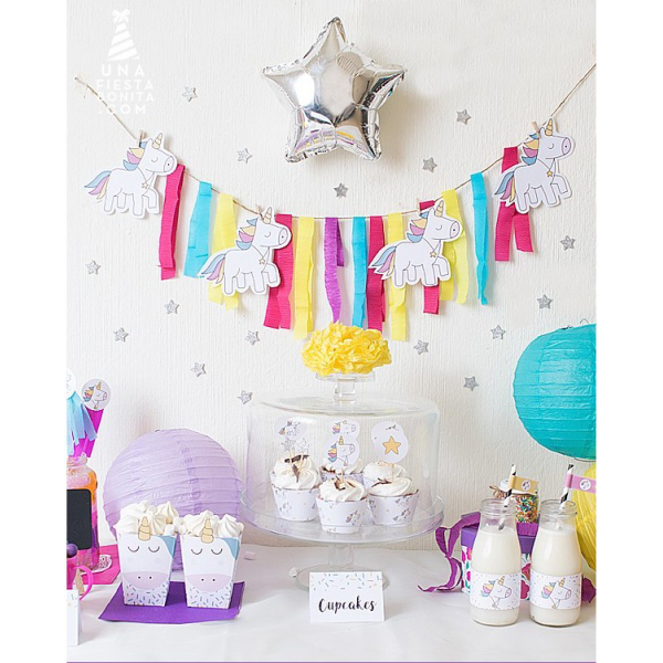 Kit de fiesta impreso diseñado por Una Fiesta Bonita. Hojas tamaño A4 llenas de imágenes preciosas que podrás recortar, montar y pegar para hacer una fiesta mágica e inolvidable.