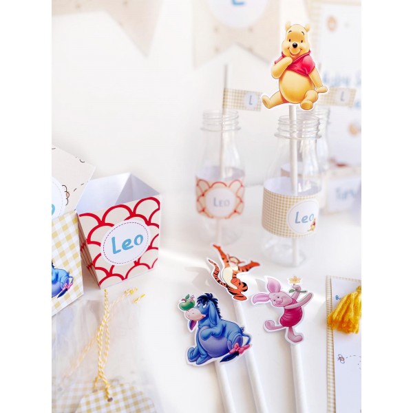 ¿Quieres preparar una bonita fiesta de cumpleaños, bautizo o baby shower con temática de Winnie the Pooh pero no tienes tiempo? Deja que te lo enviemos todo preparado para poner en tu mesa dulce con este kit montado.