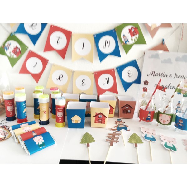 No todos los elementos van personalizados (con nombre) pero sí todos van tematizados (con la temática).