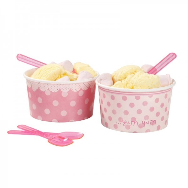 Set de 8 tarrinas rígidas para servir helado o golosinas en tonos rosa.