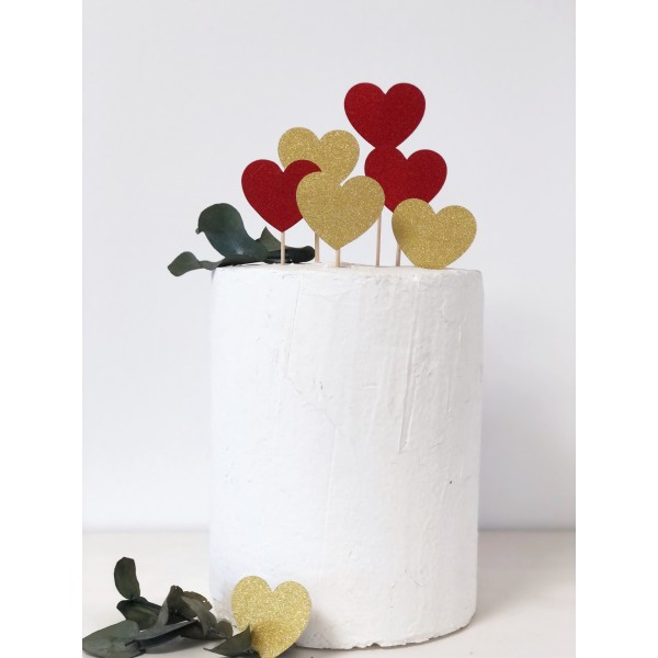 Decora tu tarta con un precioso set de corazones dorados.