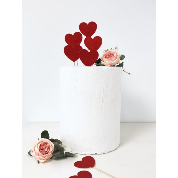 Decora tu tarta o cupcakes con este precioso set de toppers dec orazones rojos purpurina.