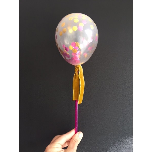 Decora tu tarta con un precioso topper con globo tranparente de 12 cm y confetti.