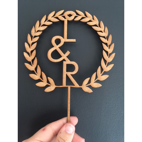 Decora tu tarta con un precioso topper Laurel fabricado en madera dm.