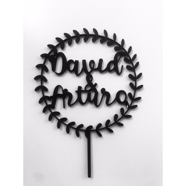 Decora tu tarta con un precioso topper Laurel fabricado en metacrilato negro de 3 mm.