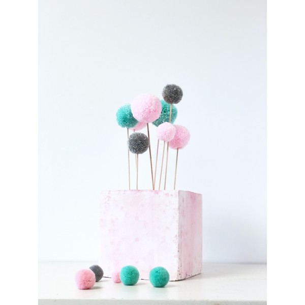 Decora tu tarta con este precioso kit de pompones de lana hechos a mano.