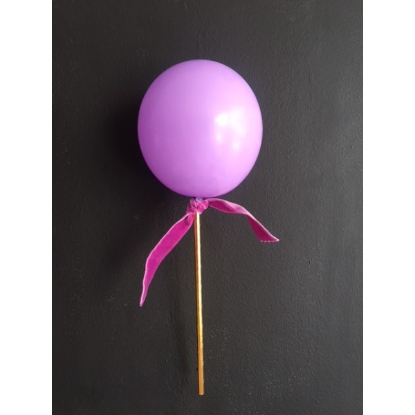 Decora tu tarta con un precioso topper con globo 10 cm color morado con pajita dorada metalizada y lazo negro.