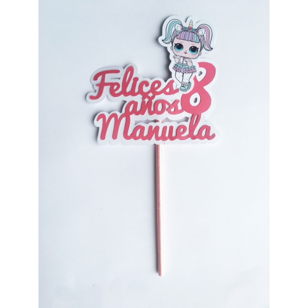 Decora tu tarta con este precioso topper de LOL Surprise personalizado con nombre y edad. Puedes indicarnos el nombre que quieres y la edad en la pestaña de ás abajo "personalización del producto". No te olvides de dar a "GUARDAR" antes de añadir al carrito.