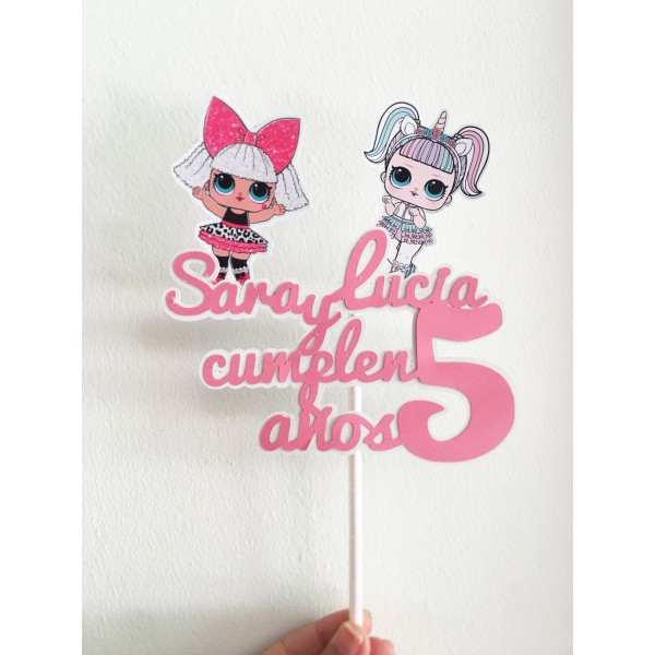 El kit contiene : 2 nombres doble capa de cartulina. 2 muñecas lol (las de la imagen u otras en stock). . Puedes personalizar el nombre y edad en la pestaña de más abajo "personalización del producto". No te olvides de pulsar en el boton GUARDAR a la derecha.