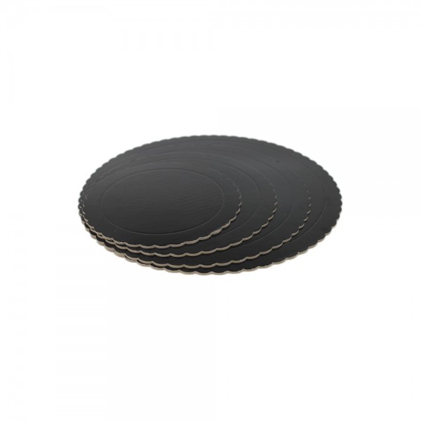 Bandeja de cartón negra para uso alimentario, entregue sus tartas y trabajos sin fisuras ni grietas ocasionadas por la base.