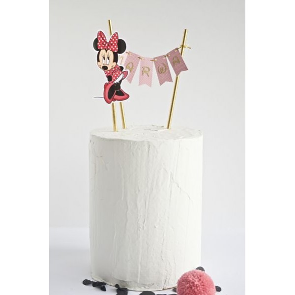 Ddecora tu tarta con este divertido kit topper de temática Minnie y personalizado con nombre.