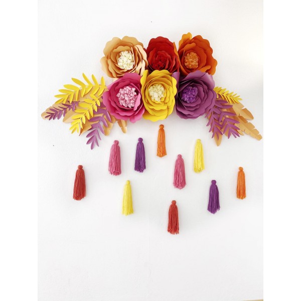 Se entrega todo listo y montado. Te llegarán las flores por separado, con las ramas y las tassels de lana para que las pongas tú mism@.