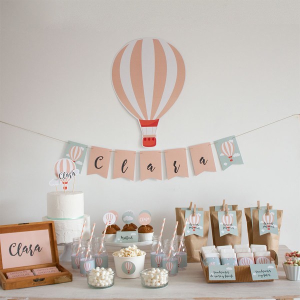 Prepara una fiesta muy original con este precioso kit de globo aerostático en colores menta y melocotón. Deja que sus sueños alcancen el cielo y que su fiesta sea inolvidable.