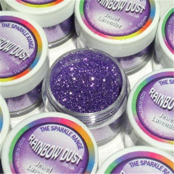 Purpurina muy brillante de Rainbow Dust. No comestible. No tóxica. Pensada para ser usada como decoración en pasteles y galletas, y consumida solo en pequeñas cantidades. Bote de 5 gr. Color: Lavender.