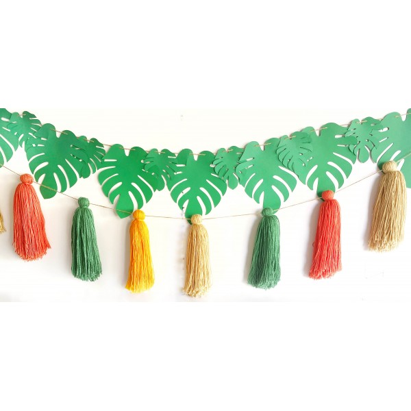 Con esta guirnalda de hojas selva + guirnalda de lana tassel hecha a mano decorarás tu fiesta de una manera única y muy original.