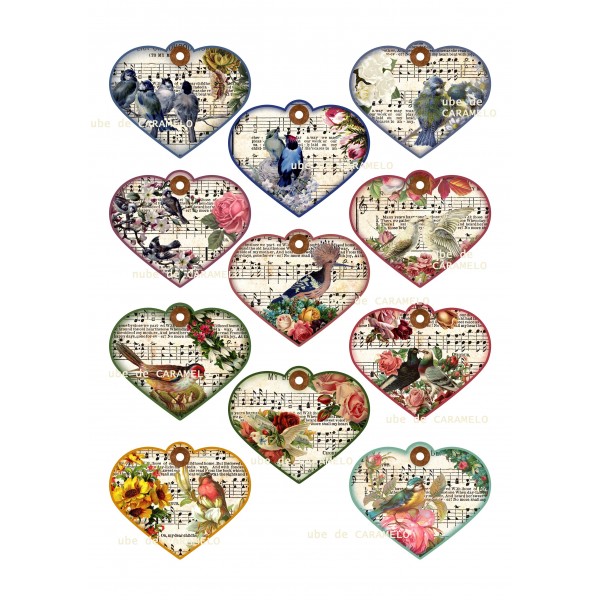 Papel corazones y pájaros