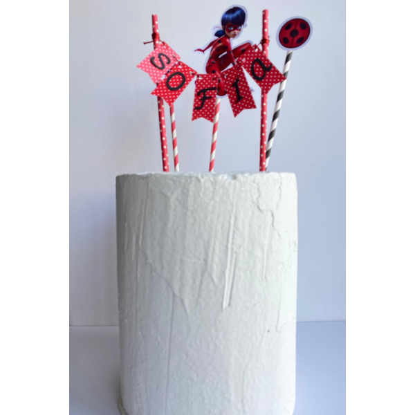 Con este kit podrás decorar tu tarta Ladybug de una manera original. Personaliza el nombre en la pestaña de más abajo "personalización del producto".