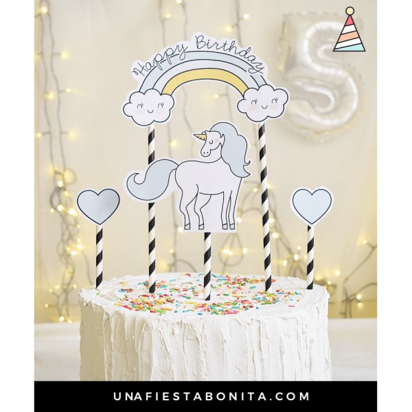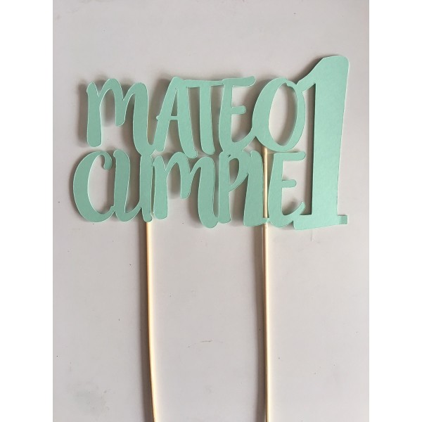 Precioso topper para decorar tu tarta. Envíanos el texto a personalizar a hola@nubedecaramelo.com. Puedes elegir el color de la cartulina y elegir palitos o pajitas.
