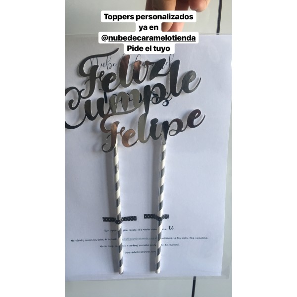 Si quieres personalizar el texto del topper tienes que añadir a la cesta "Diseño personalizado Topper letras"