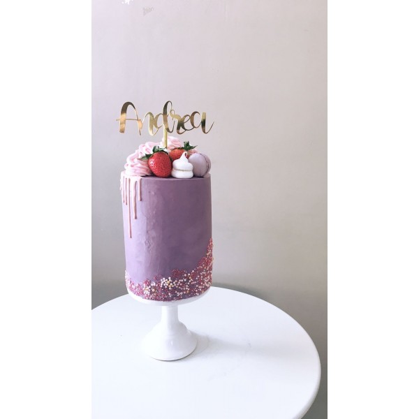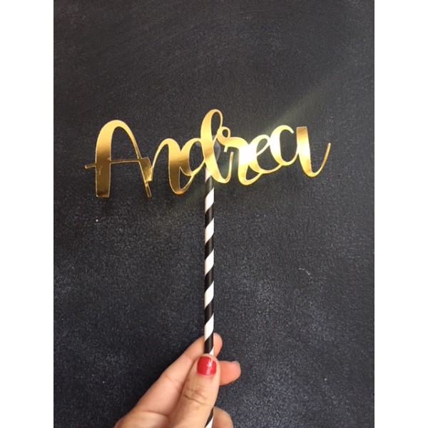 Decora tu tarta con este precioso topper con el nombre de Andrea en dorado mate.