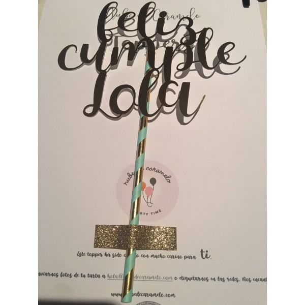 Decora tu tarta con un precioso topper de Cumpleaños con el nombre de Lola.