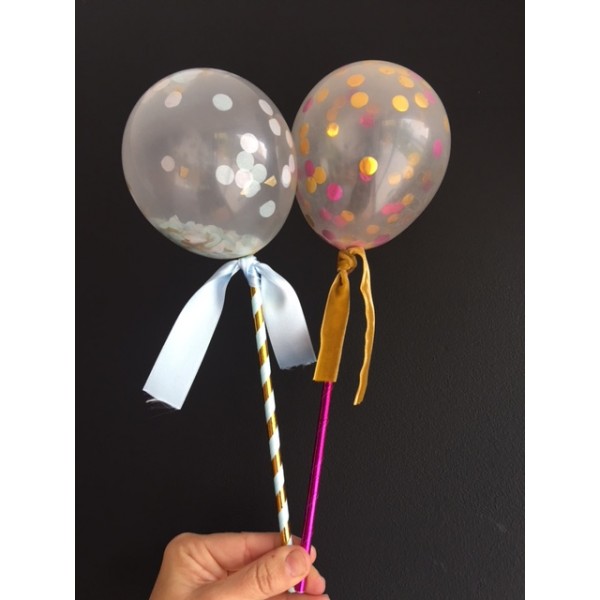Decora tu tarta con un precioso topper con globo tranparente de 12 cm y confetti. Totalmente artesanal. Incluye pajita y lazo.