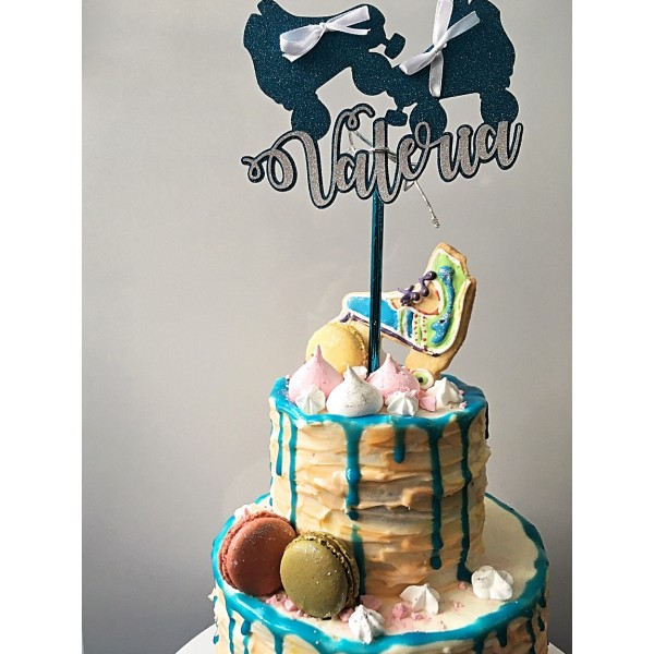 Decora tu tarta con un precioso topper de patines con nombre personalziado.