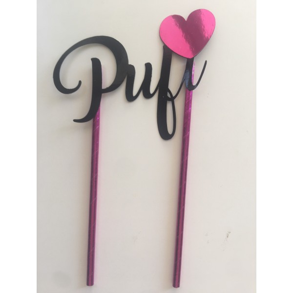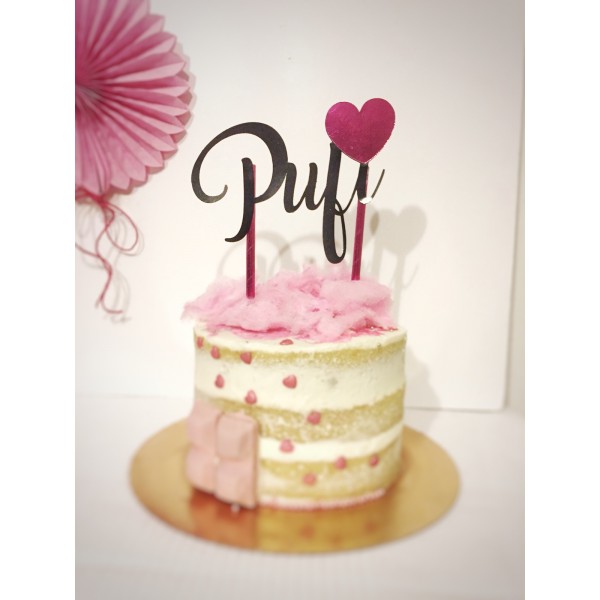 Decora tu tarta con un precioso topper con el nombre de Pufi.