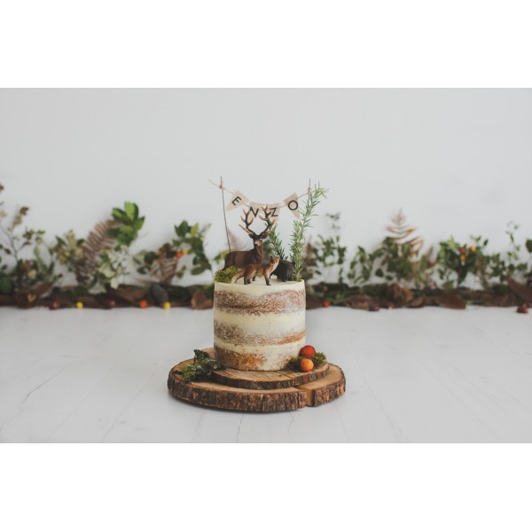Decora tu tarta con este precioso topper fabricado en tela con nombre personalizado y palitos secos.