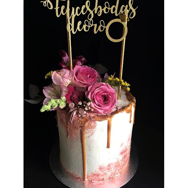 Celebra esta maravillosa fecha con este precioso topper de bodas de oro decorado con anillo.