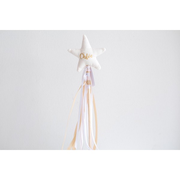 Varita mágica artesanal y personalizada. Fabricada en tela y personalizada con vinilo textil.