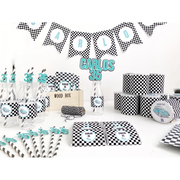 Prepara tu mesa dulce con este precioso kit de fiesta de temática Volkswagen.